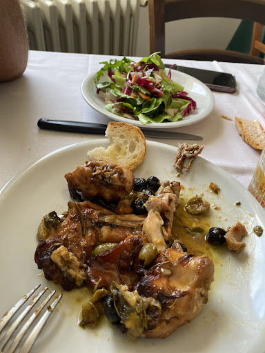 Read moreTrattoria/ristorante qualità prezzo ottimo con diversi menù a scelta (es. primo,secondo,contorno,1/2 litro di vino, acqua, caffè, coperto: 15€). Primi e secondi molto buoni e di solito anche abbondanti. Tra i primi c’è la chitarrina “alla teramana” al sugo con le pallottine che è davvero speciale, consigliatissima. In foto il coniglio alla cacciatora, uno dei secondi a scelta del giorno. A pranzo la maggior parte dei clienti sono lavoratori di aziende limitrofe o di passaggio. Alcuni giorni c’è talmente tanta gente a pranzo che si fa difficoltà a trovare parcheggio. I camerieri sono gentili e disponibili. Nel complesso rappresenta una solida realtà culinaria soprattutto per chi è lí di passaggio...