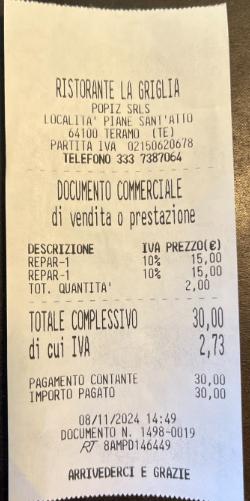 Read moreDopo aver degustato diverse volte il pranzo in questa osteria, è giunto il momento di recensirla...se lo merita in pieno! Locale situato sulla strada statale di San Nicolò a Tordino, facile da raggiungere, (solo 10 minuti dall'uscita dell'autostrada). Tutte le pietanze assaggiate sono sempre state di ottima qualità, preparate secondo la tradizione abruzzese e con ingredienti freschi e ben selezionati! La carne veramente buona! Le porzioni più che abbondanti per soddisfare ogni necessità! Unica piccola osservazione per gli amanti dei dolci, la mancanza di quelli freschi fatti da loro, ma probabilmente perché non sono tanto richiesti. Il servizio è impeccabile e il personale molto disponibile e attento ai clienti. Il titolare è quasi sempre presente e questo dimostra che ci tiene! L'ambiente interno è piccolo ma ben curato! Essendo un ristorante molto frequentato da chi lavora in zona, è consigliata la prenotazione. Il cortile esterno, attivo nei mesi caldi, è veramente carino e fresco! I prezzi sono molto convenienti. Assolutamente da...