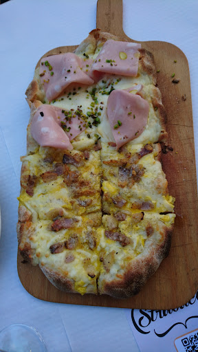 Antipasti: Una scelta di sapori e una composizione scelta dal management che ha sorridere e gioire una tavolata di 22 persone affamate e accaldate. Formaggio fritto speciale e saporito: da acquolina. -Primo: Chitarra tipica alla teramana con sugo di "pallotte". La cucina è stata talmente abile a proporre e impiattare questa pietanza che la famiglia della sposa, proveniente dalla zona del pescarese e dintorni, ha esplicitamente detto di non aver mangiato mai un piatto così buono e così speciale. Sono stati richiesti bis e tris a volontà. -Secondi: Arrosticini talmente buoni da non risultare pesanti e talmente saporiti mangiarsi da soli. Stinco da capogiro, difficile da non far diventare stopposo o pesante da mandare giù; l'Osteria Strabacco è riuscita in tutto, accompagnando questa pietanza con un contorno di patate anch'esse da acquolina. -Dolce: Crema catalana, una proposta del management che ha saputo azzeccare i gusti dei presenti senza batter ciglio. Buonissima, ovviamente.