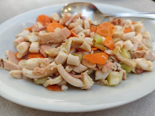 Small restaurant in downtown Termoli. Few tables available outside, sharing the crowded dehors with all other restaurants of that street - still, a pleasant ambiance in a warm evening of early September. The menu was relatively limited and focused on few freshly prepared simple plates of high quality. Delicious food, we enjoyed our Chitarrine alle Vongole and Cavatelli ai Frutti di Mare as first course, then shared the delicious Calamari con Cicoria, Moscardini in Purgatorio and Calamari Ripieni Grigliati. With two glasses of white wine (Greco grape), water, one coffee and one limoncello the bill was €92. Our waitress/owner was friendly and informative, guiding us through the details of the various dishes in the menu, passionately prepared by her husband the cook. It was a pleasant evening, we will likely visit them again when we are...