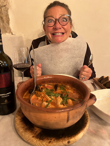 Abbiamo mangiato prevalentemente pesce tranne per un anticipato che era un tagliare di attettato con formaggi molto buono e ben servito con vari formaggi del posto e con un piccolo contenitore con il miele al suo interno da abbinare con il formaggio.