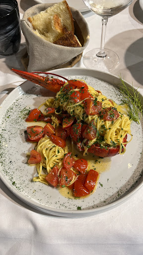 Pasta con l’astice e pomodorini completamente acquosa a causa del sugo di pomodoro che avrebbe dovuto solo fungere da “decorazione” invece aveva le fattezze di un brodo.