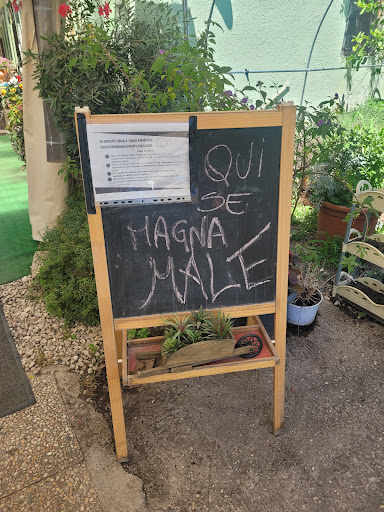 Siamo capitati per caso in questo piccolo ristorante vicino le cascate delle Marmore, perché cercavamo un posto che preparasse le lumache e tra tanti ci ha convinto il modo di rispondere alle recensioni negative del proprietario (da godersele dalla prima all'ultima)! La sala si apre con una lavagna che annuncia "qui se magna male" ed è un mix tra una vecchia trattoria e il giardino de nonna, piena di oggetti e piante che scendono dal soffitto. MA PASSIAMO ALLE COSE SERIE: Il menu è carico, con dei piatti del giorno che cambiano in base alla disponibilità (ieri le quaglie non volevano fa le uova, pazienza) e essendo venuti per le lumache abbiamo preso (non in ordine): -Lumache al sugo -Carpaccio di porcini -Porcini arrosto (i più buoni della mia vita) -Prosciutto al coltello con bocconcini di bufala -Torta ricotta e pere -Genziana casereccia -vino rosso freddo della casa, da abbinare alle lumache