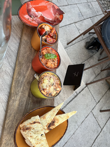Le tre stelle per la cortesia dei titolari, disponibili e cortesi… per il resto, non chiamiamolo ristorante, forse buono per un aperitivo, ma la ristorazione lasciamola fare agli esperti, non ci si può improvvisare… I tavoli di metallo piccolini, simil bar, sono sistemati su una piazzetta alla quale hanno libero accesso le auto, non c’è una separazione tra la piazza e i tavoli , non c’è una pedana, due vasi di fiori, niente. Tavolo “ apparecchiato” con una tovaglietta di plastica, stile colazione. Veniamo al menù, 2 antipasti, caramella con crema di tartufo e formaggio, bruciata ma decente, niente sapore di tartufo, cestino di formaggio con guanciale, buono ma mini Tagliere, ecco, parliamone, per un aperitivo, si può fare come antipasto, se me lo fai pagare 10€ bisogna che gli affettati, anche al fine di riconoscerne il nome, li fai un po’ più spessi, sembravano veline, i mini crostini facciamoli con il pane fresco e bruscato una sola volta, non puoi portarli duri e chiaramente riciclati, il ciauscolo se puzza bisogna che lo butti. I primi non posso espormi, ho assaggiato le strappatelle, il condimento era buono. I secondi se ti vuoi chiamare ristorante, non posso trovare 2 secondi involtini al sugo e spezzatino… ecco il conto, invece 80€ per 2 calici di vino Un minitagliere, una Coca-Cola, 2 antipasti, mezza porzione ( quindi 1/4 viste il tutto Mini) di strappatelle e una pappardella mi è sembrato l’unica cosa abbondante! SCONSIGLIATO…ps dimenticavo il mini tiramisù in tazza 🤦🏽♀️ Con...