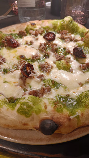 Fuimos a cenar un sábado con reserva a las 21h. El restaurante estaba completo. Es un restaurante para ir sin prisa porque el servicio es lento (entiendo que es por los tiempos de cocción de la pizza gourmet)