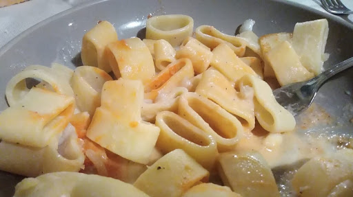 Read moreSorpresi dall'accoglienza iniziale, troviamo a tavola un piatto contenente 2 porzioni di tortellini panna e prosciutto per le bimbe (6 e 12 mesi). Il costo di quel piatto era 25€, a fine pasto. Considerando anche che non era stato richiesto ed è tornato in cucina pieno. LE BIMBE HANNO PAGATO ANCHE IL COPERTO. Antipasto completamente riciclato dal pranzo di Pasqua, e pure male, visto la coratella completamente asciutta in un panino secco, i vari bastoncini di purè ripassati in forno ecc. 2 primi di scarsa qualità, poco meglio il risotto, ma la pasta fresca assolutamente da cancellare. Gommosa e per niente condita. 1 secondo raccapricciante, una cotoletta d'agnello dura come il marmo (servita calda) con frammenti d'osso e carciofini fritti. Dolce ridicolo, composto da pezzetti di colomba avanzata il giorno prima, affogata in una crema inglese estremamente profumata allo zafferano... Raccapricciante. Degna di nota gentilezza del cameriere che chiede se può OFFRIRE degli amari, addebitati TUTTI a fine pasto. Il vino era abbastanza economico.