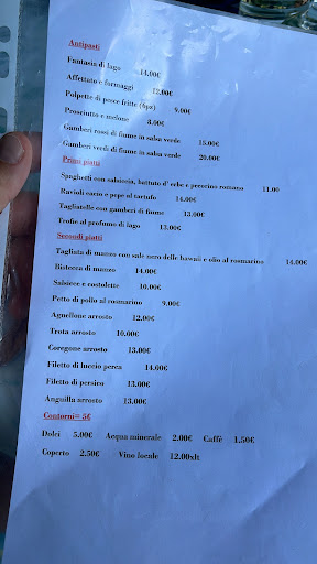 Eravamo in 4 persone, l’antipasto fantasia del lago (14€) consisteva in una mini insalata di quelle delle buste con 4 fagioli del barattolo e mezza scatoletta di tonno, 2 bruschette una di cipolla e l’altra di non so cosa è 2 crocchette di laboratorio di non so che cavolo c’era dentro. Poi i gamberi di fiume, mezzo grammo di gambero più che altro mangi la salsa verde. La pasta abbiamo chiesto se gentilmente ci cambiavano le tagliatelle con i gamberi di fiume perché Cristo Santo tagliatelle con il pesce a 40 gradi sotto il sole anche no, per spaghetti. Ci hanno accontentato. 13 sacchi di pasta che consisteva in 90 gr di pasta in crudo con una salsa al pomodoro anche discreta ma i gamberi erano praticamente i carapaci che erano avanzati dall’antipasto (ironia). Abbiamo preso 1/2 vino bianco in due, gli altri commensali acqua, io un cheese cake di pasticceria che era una cucchiaiata è un caffeaccio. 40 euro a cranio. A Piediluco, mica sul lungomare di Mergellina, per dire. Cari paesani, vengo qui tutte le estati tutto il mese di agosto, state bene così. Bella la location e bravissimo il cameriere Massimiliano anche se poverino da solo non dava a basto. 40 sacchi a cranio e non prendete un cameriere extra....