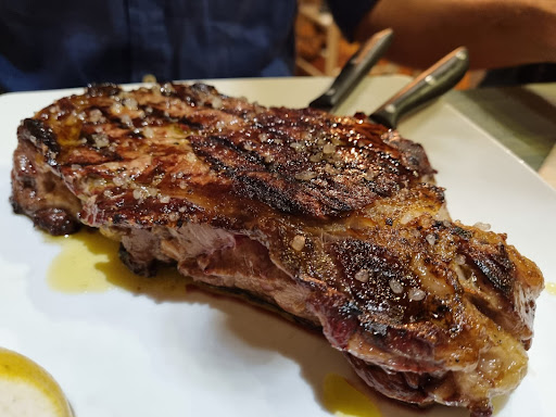 Ottimo il cibo. Bella e suggestiva la location ai piedi delle mura che trasudano storia. Grande parcheggio privato -che nel centro storico è una vera chicca- tavoli sia all'esterno sia all'interno. Purtroppo il locale non è climatizzato quindi d'estate la zona interna è impraticabile per il troppo caldo. È stato necessario chiamare un paio di volte prima di trovare un tavolo all'aperto. Impensabile andare senza prenotazione a meno di non accontentarsi di cenare molto-molto tardi. Abili e gentili i pochi addetti senior ma impacciati e disorientati quelli junior. Abbiamo chiesto di cambiare un calice che era scheggiato e non ce lo hanno riportato più, abbiamo dovuto chiedere più volte per avere il pane, hanno servito i contorni sconditi (bene) ma poi per avere di che condirli abbiamo dovuto chiedere più volte... Viceversa siamo stati molto ben seguiti e consigliati nella scelta della carne la cui proposta a menù è molto ampia. Carta dei vini ricca e varia, volendo c'è anche un vino della casa. C'è anche birra (Menabrea). Totale 75€ per un antipasto della casa che abbiamo diviso in due (enorme, vario, sfizioso e gustoso), una costata irlandese da c ca 800 grammi cucinata a puntino con il sale grosso (abbiamo diviso in due anche questa e ne è avanzata un pochino), un contorno abbondante di peperoni ben cotti alla brace, una porzione infinita di chips potatoes rigorosamente non sbucciate, un litro di acqua mineralizzata "in casa", una bottiglia piccola (375 cl.) di Shiraz Casale del Giglio. Ci siamo ripromessi di tornarci d'inverno, prenotare un tavolo all'interno, provare i primi piatti -che a guardarli passare sono sembrati caserecci e molto interessanti- portare degli amici di...