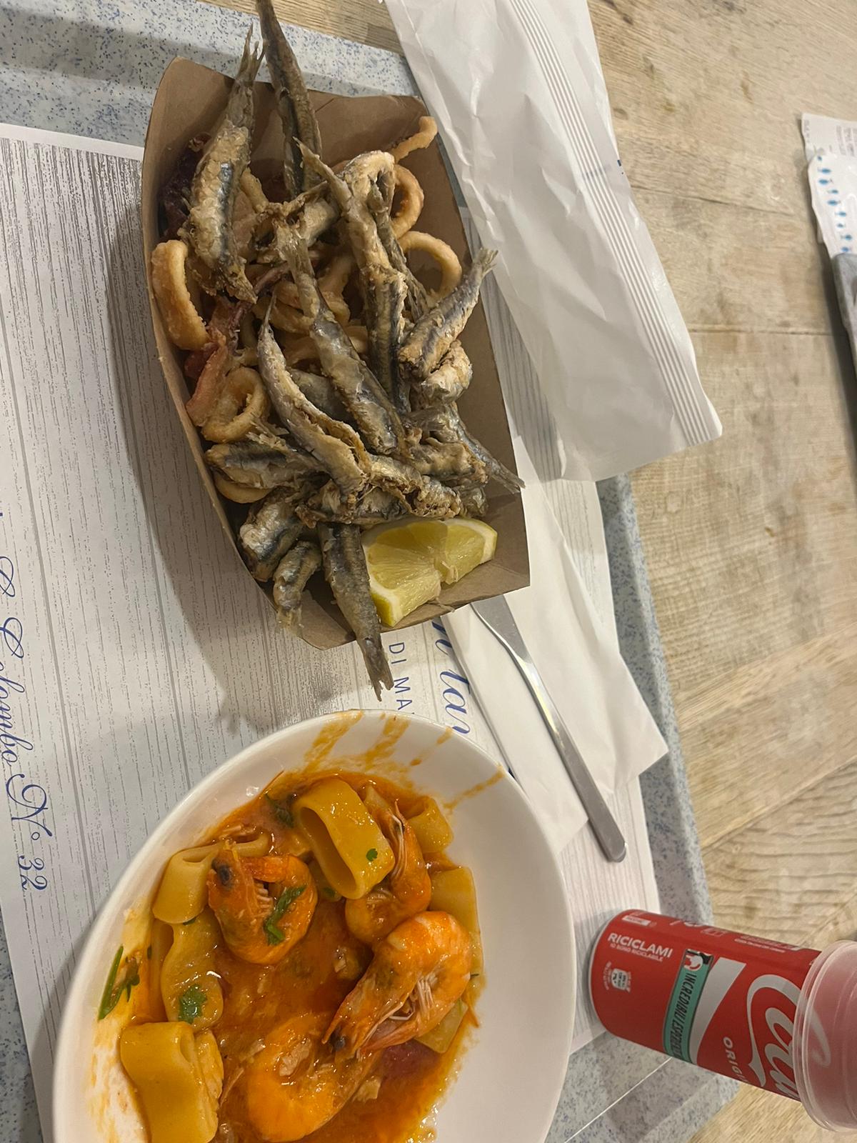 Cucina: Il piatto forte, ovviamente, è il pesce fresco. La qualità dei prodotti è eccellente, e ogni piatto trasmette l'autenticità della tradizione marinara locale. Tra i piatti consigliati, non perdere il crudo di pesce, la pasta con frutti di mare e le grigliate miste, tutte preparate con ingredienti freschissimi e ben bilanciati.