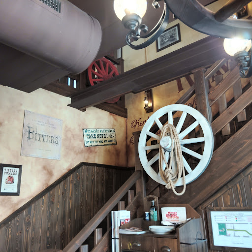 We booked the table in advance and still it took time to order. Had to ask them to take our order. Extremly under friendly staff which isn't foten that you get in Terracina. Had to wait a long time for getting both drinks and food. Food was not warm when served. I would say that even McDonald's is a better choice! For a real good steak or burger in Terracina go to Dogana. To make it even worse they take a service charge which is well hidden in small letters with extras?! Must be planned that way, by a big chain that Old Wild West is. In summary a place to avoid! Plenty of better places...