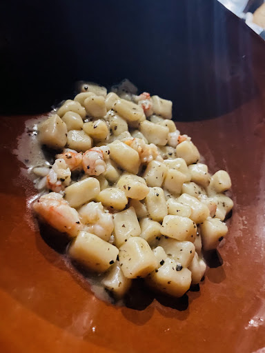Read moreQualche giorno fa ci siamo recati in famiglia a mangiare presso questo ristorantino su consiglio della sorella della mia compagna: il proprietario nonché Chef Alberto ci ha accolto subito in modo benevolo e frizzante, unendo la cortesia e professionalità tipica di chi conosce il proprio mestiere alla genuinità di chi sa essere alla mano e sa come porsi con ogni tipo di persona, stessa cosa può dirsi del personale di sala, Maria, che ci ha tenuto compagnia con garbo, dolcezza e simpatia, servendoci con bravura e precisione, soddisfando ogni nostra necessità per tutta la serata. La location è un ampio giardino, fresco e arredato con semplicità e attenzione per i dettagli, sito nei pressi della ben nota gelateria Pupo, rendendone facile il raggiungimento, altamente consigliato per una serata romantica. Per quanto concerne la cucina c è ben poco che posso dirvi tranne questo: Alberto conosce il suo mestiere in cucina ancora meglio di quello di padrone di casa, frutto di anni di studio e perfezionamento anche all’estero rendendo ogni piatto unico e soprattutto “suo”: te ne accorgi dalla delicatezza, parola chiave nel suo repertorio culinario, che accompagna ogni singolo piatto, pur vantando un menu piuttosto eteterogeneo e portate dal gusto ben diverso tra loro; avendo provato letteralmente ogni antipasto sul menù posso raccomandarli tutti senza alcun dubbio mentre per i primi vi dico solo “fusilloni al profumo di limone e cernia” e “linguine alla crema di scampi”. La mano di Alberto ha saputo riplasmare anche la classicissima e sempreverde frittura di paranza, caratterizzata su questo palco da una frittura leggera e gustosa, assente di un uso spropositato del sale, rendendo al massimo il sapore di ogni singolo componente del pescato del piatto. La scelta dei vini e degli ammazza caffè è adeguata e varia: nota di merito alla presenza del jefferson di cui sono amante e che non tutti i locali hanno a disposizione. Per finire il costo: il ristorante ha un ottimo rapporto qualità prezzo, sia alla carta che considerati e vari menu fissi, tra cui la domenica spicca quello paella, motivo per il quale stiamo programmando di tornare a mangiarci: non aspettatevi però di spendere 30€ a persona perché questo non è un take away ittico ma un vero ristorante di pesce, con la preparazione e la tecnica del moderno e il sapore e il profumo del buon pesce di tanti anni fa, quando ancora si teneva al cliente e non...