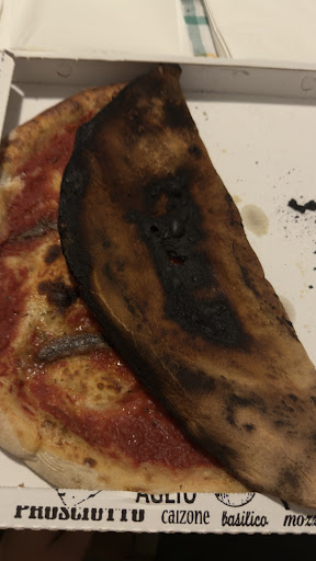 L' impasto poco idratato, lievitato ed alveolato Pizza pesante con fondo sporco di farina bruciata di altre cotture. Il fior di latte utilizzato nella margherita era buono, la napoli ugualmente pesante, pomodoro acido e crudo.. All' aglio va tolta l' anima altrimenti si puzza per giorni...