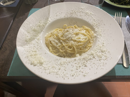 Read moreCibo eccezionale e dettagli curati Abbiamo avuto un'esperienza culinaria fantastica. Il cibo era spaziale. Per iniziare, abbiamo condiviso un tris di montanare, ciascuna con un gusto unico: una classica al sugo, una più ricca con mortadella e stracciatella, e un'altra con scarola e olive nere. Abbiamo proseguito con piatti di pasta e un secondo. I tagliolini con totanetti e datterini erano saporiti e ben bilanciati, e le mezze maniche cacio e pepe erano preparate a regola d'arte. L'unico piccolo neo è stato il calamaro ripieno, che, pur essendo buono, era un po' una porzione ridotta, consistente in soli quattro anelli. Inoltre abbiamo preso una millefoglie scomposta e un tortino al cioccolato dal cuore caldo, splendidi tutti e due. Servizio professionale e attento Il servizio è stato impeccabile e ha superato le nostre aspettative. Il cameriere che ci ha seguiti era un vero sommelier, e la sua professionalità si notava in ogni gesto, specialmente nel modo in cui ha servito il vino. Abbiamo apprezzato molto anche la sua attenzione ai dettagli, come il gesto di consegnare i menù prima alla donna più giovane e poi all'uomo più anziano, un segno di grande cortesia e rispetto. Atmosfera incantevole L'ambiente ha contribuito a rendere la serata speciale. Sebbene il locale si trovi in un vicolo tranquillo, è impossibile non notare i tavolini all'aperto che creano un'atmosfera accogliente. Entrando, si viene accolti da una sala con tavoli disposti sui lati e un bancone cassa al centro, splendidamente decorato con piante e luci che scendono dal soffitto. Questa cura per l'arredamento rende il ristorante un luogo davvero piacevole. L'unica pecca è che bisogna aspettare un po' di più del dovuto per l'arrivo dei piatti, ma per il resto...
