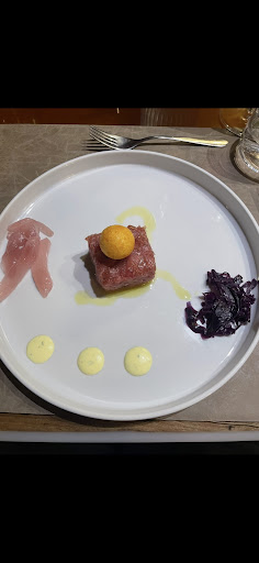 Read moreLa serata comincia male già in partenza, avevamo scelto il ristorante perché il loro sito indicava un menù alla carta con piatti e prezzi che ci piacevano. In realtà il sito è vecchio e della gestione precedente e scopriamo, solo dopo che ci è stato portato il primo antipasto, che il menù è a prezzo fisso di 30 euro con piatti "a sorpresa". Proviamo a chiedere spiegazioni ed esprimiamo il nostro disappunto ma ormai avevamo già incominciato e anche togliendo qualche portata il prezzo rimane quello fissato. Arrivano alcuni altri antipasti, alcuni veramente buoni, va riconosciuto, e altri meno. Il primo piatto era una lasagna alla parmigiana molto secca e con tanti ingredienti che non c'entrano niente con nessuno dei due piatti e che stonavano molto tra di loro. Il secondo un'anatra molto molto secca e dura e difficile da mandare giù (lo chef dice che è la cottura a bassa temperatura...). Non ci viene portato il contorno che era indicato nell'elenco delle portate. Lo chef prima del dolce esce per il giro di gloria cercando consensi tra i tavoli ma noi molto tranquillamente gli spieghiamo i vari problemi della serata. Poche parole di circostanza sperando che il dolce sistemi tutto. Peccato per il semifreddo appena uscito dal frigo e ancora congelato, difficile da mangiare. Niente di speciale e con una salsa al basilico che ha rovinato tutto.