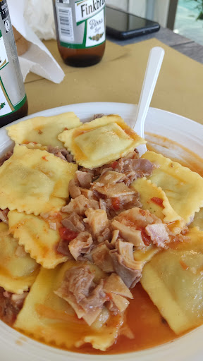 Di ritorno da un concerto al nord, a pranzo abbiamo cercato un posto che fosse alternativo e vicino all'autostrada. Per fortuna tutti i membri dell'equipaggio erano di larghe vedute in fatto di cibo, per cui non c'è voluto molto a convincerli a condividere questa esperienza gastronomica in una vera tripperia. La location è poco più di un camper con veranda e tavolini, si ci accomoda su panche e la mise en place è una tovaglietta di carta con posate e bicchieri di plastica, ma l'atmosfera è da festosa sagra paesana. Ma sono il proprietario e la sua compagna il vero ingrediente segreto di questa tripperia. Il loro entusiasmo e la loro passione fanno in modo da creare piatti apparentemente semplici e tradizionali capaci di sprigionare al palato sorprendenti sensazioni. Dopo un antipastino composto da una fresca e gustosa insalatina di bollito, abbiamo proseguito con dei delicatissimi tortelli al lampredotto, chiudendo con un carpaccio di guancia di vitello e verdurine croccanti. Tutti piatti di cui conserveremo a lungo memoria, si sono rivelati persino al di sopra delle già promettenti aspettative. In definitiva un luogo da visitare e rivisitare appena possibile e da raccomandare a tutti gli amanti del buon...