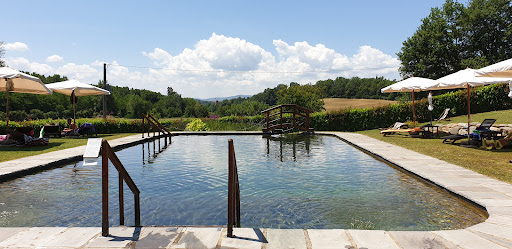 Posto stupendo e accogliente, immerso nel verde, ottimo per rilassarsi e staccare completamente. Struttura curata e tenuta molto bene, con ampio parcheggio interno. La proprietaria Serena, con la sua famiglia, dolcissima e accogliente. Ci hanno accolto con un buon caffè. Siamo stati non bene, di più, come a casa. Abbiamo soggiornato per due notti, cenando nel ristorante entrambe le sere. Praticamente non siamo mai usciti dalla struttura. Abbiamo avuto la possibilità di fare qualche aperitivo e pranzare nonostante il ristorante della struttura apre soltanto la sera. Le camere sono arredate, spaziose e pulite; unico neo forse la mancanza di condizionatori in stanza, sostituiti comunque da un ventilatore che fa il suo. Tutto sommato si è dormito bene senza soffrire troppo il caldo. Colazione inclusa, composta da varie possibilità di dolce e salato. Prodotti fatti da loro, tutto molto buono. Il ristorante nella struttura apre la sera, ed è frequentato anche da persone locali. Possibilità di gustare la fiorentina e altri tipi di carne, primi antipasti e dolci. Si è mangiato bene. La piscina è completamente naturale, priva di prodotti chimici e depurata da alcune piante. L'acqua era pulita, ma potrebbe non piacere a tutti. Vi consiglio di cercare informazioni al riguardo sulle biopiscine. La piscina è utilizzata solo dagli ospiti, quindi c'è molto silenzio e relax, quello che cercavamo. Alla reception è possibile acquistare prodotti fatti da loro, come vino, liquori, marmellate e altro. Non c'è altro da dire, sicuramente torneremo. Posto...