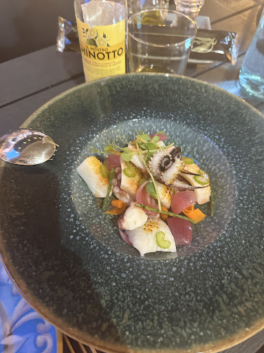 Tourists stay away! This place is definitely not worth a visit. It is absolutely not what the current rating is. It is very expensive and has a weird vibe. When my partner and I visited, we ordered a Campari Spritz and were delivered an Aperol Spritz. The waiter did not inform us of the change or provide another option. When I walked to the bathroom, the inside of the restaurant smelt like grape vape. Such a strong odour! When I asked for an ash tray when I was sitting outside, the waiter then told me I needed to move to the street… despite there being ash trays on tables and we are in Italy! Where everyone smokes at the table. Finally, we ordered octopus with potato cream and it was super small for €15 and it tasted bland. We were also charged a €6 euro service charge onto our bill and when asked, they said it was for the waiter. We have never been charged a service charge whilst exploring Italy. It was an absolute joke!