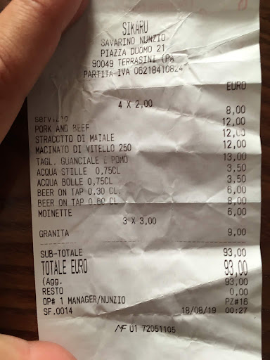 First of all, went there few times for their selection of special beers, however today went for a dinner. All I can say - if a customer coming to your restaurant is seen as an inconvenience, then maybe don’t take customers. Arrived, there was a beautiful table on a balcony, ask to sit specifically where I can smoke, and instead of balcony was lead all the way to the back room, where I had to have my dinner on a couch, with a couch table! Ordered food, some snacks arrived, 5 minutes later the waiter came to take it away because apparently it was not for me. Got my food - ordered pasta with shrimps for 18 euros, literally got the smallest portion I’ve ever had in Sicily, with 5 shrimps. Counted - 5 shrimps. For a comparison - Michelin star restaurant in Terrasini pasta costs less. After this, even better - although I specifically asked for a place where I can smoke, the owner (I guess) came to take my ashtray away because I couldn’t smoke there after my food anymore, because a big group was arriving or what ever reason. Felt supper unwelcome and like a literal inconvenience for the restaurant. Thank you,...