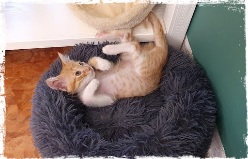 Non appena avevo avuto notizia della prossima apertura di un cat cafè a Trento, non avevo perso d'occhio il loro sito attendendo con trepidazione l'apertura delle prenotazioni. Mi sono assicurata così la nostra visita al "Gatizole" oggi. Il locale è molto carino, di modeste dimensioni, arredato con graziosa semplicità. Pochi tavoli in un'area circoscritta, a cui si accede da un'anticamera separata da una porta scorrevole a rete. Durante l'attesa, all'esterno del locale, gli occhi di tutti noi che avevamo prenotato per lo stesso orario, erano incollati alla vetrina alla ricerca delle vere star del "Gatizole", i quattro micetti Suzanne, Nina Alcide e Gianni. Una volta fatti accomodare, siamo andati letteralmente in brodo di giuggiole trovando la piccola Nina placidamente spaparanzata in una cuccia a terra, proprio accanto il divanetto dov'eravamo seduti. Una pallottolina di pelo arancio dal pancino rotondo e pieno di pappe, il musino vispo di cucciolina. Che si è subito appisolata, sprofondando nel tipico sonno dei gattini esausti dopo aver tanto giocato. Davanti a noi, incurante della superficie dura di una mensola, sonnecchiava Alcide, lucido manto nero e musetto indistinguibile dal resto del corpo. Non si è curato di alcuno; per tutto il tempo, nonostante svariate carezze e tentativi di svegliarlo da parte di altri avventori (un micio che dorme, però, dovrebbe essere lasciato in pace), Alcide ha continuato a ronfare beatamente. Suzanne, la piccola tabby, anche faceva nanne, sdraiata a ridosso della vetrina, per farsi ammirare anche dall'esterno. Non riuscivo, però, ad individuare Gianni, il cucciolo di scottish fold, quello che più ero impaziente di conoscere. Facendolo presente alla cameriera, assieme ai titolari si sono messi a cercarlo, con crescente preoccupazione: non sarà mica riuscito a scappare?!? Il piccolo si era rifugiato in una stanzetta non accessibile al pubblico, passando attraverso una gattaiola, infilandosi sotto un mobile. Ma quando ne è uscito, comparendo d'improvviso nel mezzo del locale, un coro all'unisono si è levato: "Ohhhhh!!!" come stessimo tutti assistendo ad un'apparizione divina. Quando siamo riusciti a portarlo sul nostro divanetto, ce ne siamo subito innamorati: un peluche morbido dal musino dolcissimo, il pelo eccezionalmente setoso, e quelle orecchiette schiacciate all'ingiù che lo rendono irresistibile. Un'ora soltanto ci era concessa, passata purtroppo in fretta. Abbiamo gustato un buon frullato e mangiato dolcetti. Ma tutto passava in secondo piano rispetto agli adorabili gattini. Abbiamo apprezzato davvero molto il Gatizole ed i loro micetti: ho soltanto dovuto reprimere con forza la tentazione di infilarmi Gianni nello zaino e portarmelo a...