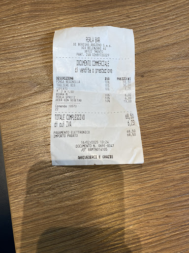 Read moreEsperienza da dimenticare. Siamo arrivati per fare un'aperitivo verso ora di pranzo, il ragazzo alla cassa ci ha inviato a sederci nella sala interna, ci sediamo al tavolo (4 adulti e 2 bambini piccoli) la cameriera gentilissima prende l'ordine di 4 birre e 3 focacce farcite e 1 acqua. Dopo un'eclatante discussione avvenuta tra il personale dello staff, si è subito presentata un'altra cameriera e ci ha sgarbatamente inviato a lasciare il locale perché a detta sua "4 birre e 3 focacce sono troppo poche per stare qui". A questo punto ci siamo alzati e abbiamo lasciato il locale, preciso che la cameriera maleducata ha letteralmente spinto fuori dalla saletta mio figlio più piccolo di tre anni, augurandoci Buon Natale in maniera ironica. A parte la maleducazione e la scenata avvenuta davanti alle altre persone esterefatte che occupavano la saletta, essere letteralmente cacciati per aver ordinato troppo poco non mi era mai capitato, abbiamo ordinato una "bevuta" a testa compresi i bambini a cui abbiamo preso l'acqua, non abbiamo ordinato i loro "gustosi" piatti trentini perché dalle recensioni abbiamo visto che erano pessimi e abbiamo optato per qualche focaccia farcita per accompagnare le birre, per la cameriera è troppo poco, quindi Via!! Non abbiamo voluto fare troppe discussioni ma ricordo ai proprietari che un bar è un Esercizio Pubblico con tanto di autorizzazione rilasciata dal Comune e che nessun cameriere ha la facoltà di mandare via un cliente perché una birra e una focaccia sono troppo poco per essere consumate seduti...