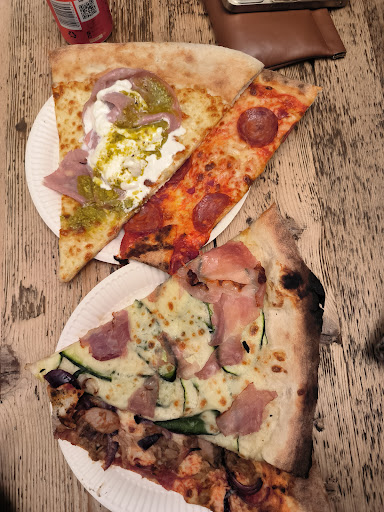 The slice with mortadella, cream, and pistachio was nice. The one with zucchini and prosciutto is...