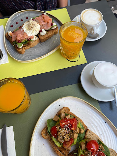 We each went for the Avocado Toast combo that included an avocado toast of our choosing (we chose the salmon & vegan option respectively), a glass of orange juice and a cappuccino for a very fair 12.90€. We were quite stuffed at the end.