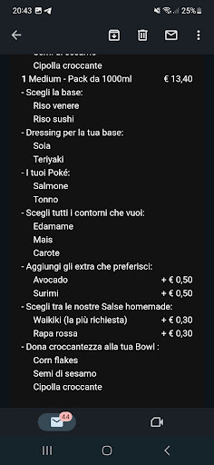 Read moreAs I’m not an Italian speaker, I chose from premade recipes of poke and was quite disappointed. I ate salmonikiki. Don't expect anything healthy. The rice was soaked in soy sauce, with too much Mayo-based sauce on top, and just a little vegetables on the plate. On top of that, you get to eat with a plastic fork. The only good thing about this place is that you can get your meal...