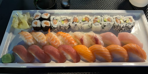 Read moreSiamo andati per il menù degustazione del 25 giugno proposta a 67€ a coppia invece che 100€. Il menù era diviso in 5 portate se così si possono chiamare: 1) una ciotolina di edamame (ridicolo che venga inclusa come portata) 2) 4 roll (a testa, nella foto il piatto era da dividere) 3) 6 fettine di sashimi di salmone in estratto di barbabietola (no foto) 4) due mini burger da dividere 5) 9 fettine di tagliata di wagyu. Intanto si parla di menù degustazione a coppia ma ogni piatto che portavano andava diviso come se il menù fosse per singola persona. Sapori del cibo assolutamente mediocri, assolutamente inferiore alla media dei molto meno costosi ayce. L’avocado in qualsiasi piatto era acerbo. Salmone completamente insapore se non fosse per quell’estratto di barbabietola che personalmente non ho gradito come abbinamento. In generale è anche difficile commentare l’insoddisfazione che ci ha colpiti finito il pasto. Quando si parla di menù degustazione ci si riferisce ad una serie di piatti che per quanto piccoli in porzioni alla fine ti lascino soddisfatto e non con un buco nello stomaco. In aggiunta nonostante abbia apprezzato l’arredamento del locale, c’era la musica altissima (personalmente non la gradisco quando devo mangiare), i camerieri nella norma se non fosse che metà dell’estratto di barbabietola è finito sul tavolo nel momento in cui la cameriera è venuta a prendere il piatto senza che se ne accorgesse ma per carità può succedere. É sicuramente un locale per coloro che si riconoscono nella categoria di cool e che del sushi alla fine neanche gli interessa molto. Per quelli che invece vanno per mangiare del buon sushi il locale è assolutamente sconsigliato per mia opinione personale. Prezzo dell’esperienza 74€ con acqua e coperti (incommentabile, è stata una presa in giro conoscendo il food cost e avendo esperienza di ristorazione). Talmente vuoti e insoddisfatti che dopo cena siamo andati alla rosticceria cinese La Perla d’Oriente che si trova praticamente li davanti e che con 10€ ti fa prendere ravioli, spaghetti di soia con verdure e un bel secondo. Ecco piuttosto quella è super...