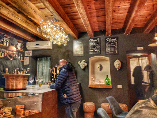 A xe minimo sie lustri che vao in enoteca papilio e go sembre bio vudo caro. I ga un nero sincero che xe da baxarse le manine e tanta iente bona che te sta drio e te iuta tiarte su intea carega co te te capoti forsa de bevare goti. Consilio vivamente tute le sere dea sitimana. Mi so sempre la tacà su pal banco. Desso i ga anca un'oferta che fa spavento: ogni du bussuni de verdusso i te dà un biglieto dea loteria che te poi vinsare un uichen dai frate a posena, un motocaro gussi elaborà o na pessa de tenaro. Mi no vinso mai un casso ma almanco me perdo via e dormo sensa tore...