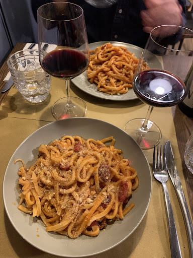 Read moreBottega del grano mi ha delusa, avrebbe meritato indubbiamente 5 stelle per la sua ottima pasta fresca, buonissima davvero, ma dopo averci servito con quasi un’ora di RITARDO dall’antipasto i mie buoni propositi per un ottima recensione erano andati… Gentilissimo il cameriere Fedele, è stato molto bravo a nascondere il disagio e l’imbarazzo della nostra attesa, a cui abbiamo chiesto spiegazioni per ben 3 volte, di cui una, in cui siamo stati palesemente ignorati dall’altra cameriera… e il povero Fedele è intervenuto per “ulteriori spiegazioni “… “i piatti erano in arrivo”, eccetto per il fatto che gli altri tavoli (erano pochissimi, una tavola di 10 persone, un tavolo da due, e il nostro da 4), erano stati serviti molto prima di noi pur essendosi seduti dopo. Noi abbiamo iniziato alle 21:00, la pasta FRESCA, non meriterebbe tal nome vista la celerità del servizio, comunque, la pasta l’abbiamo mangiata alle 22:30 passate, e il nostro antipasto era esiguo, un piatto al centro di salumi e formaggi, 3 tipi di salsine, e 2 piatti di zucchine ripiene con la ricotta. Alle 21:30 erano stati già digeriti! Mangiare la pasta dopo un’ora è assurdo! Non avevamo più appetito, mi era calato il sonno e avevo freddo! Ah, ciliegina sulla torta: il mio piatto di pasta era stato probabilmente “smezzato” nella sua quantità con quello di mio padre, era davvero poco ( in allegato la pasta con pomodorini) rispetto agli altri piatti che erano molto abbondanti,i nostri sembravan esser già stati mangiati n’altro pò! Ho impiegato un mese quasi per scrivere questa recensione, la macinavo da tempo. Mi son tolta un peso, questa è stata la mia esperienza…magari a voi vi serviranno prima di...