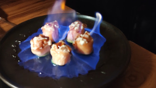 Incuriosito chiamo e prenoto per due. Io e la mia compagna siamo appassionati di cucina giapponese e sinceramente questo locale è più dedicato ad una persona che si avvicina al sushi piuttosto che un tradizionalista come me. Ciò non toglie che abbiamo passato davvero una bella serata, mangiando dell'ottimo sushi e sashimi nei nighiri e rolls più tradizionali ed anche assaggiando le creazioni più stravaganti, sinceramente da provare i rolls al pistacchio e quelli al limone, molto freschi.