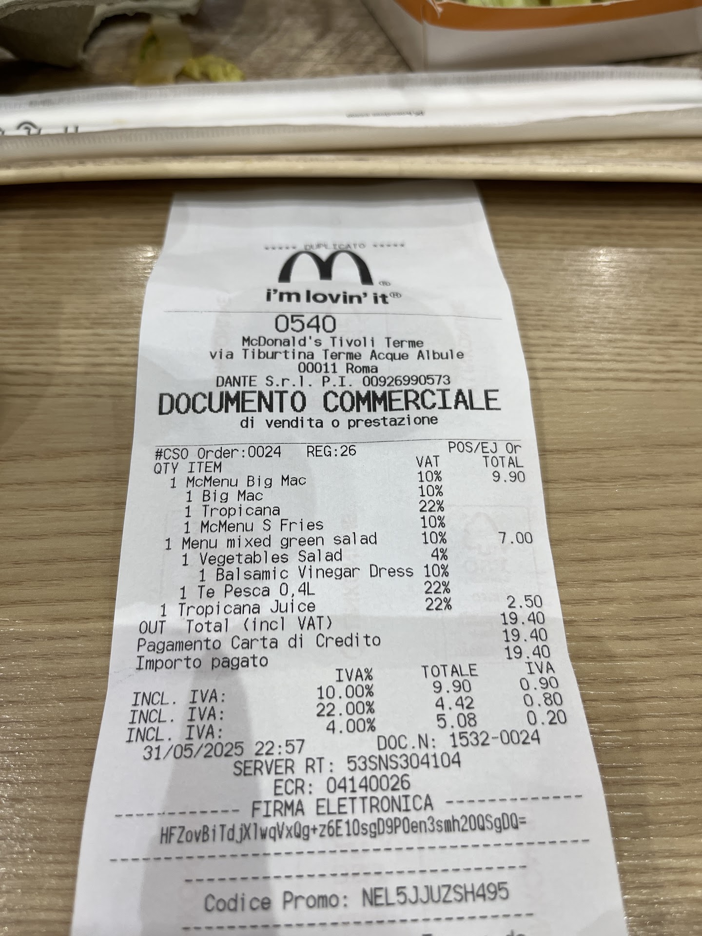 Waited 25 min for my order. Bigmac was cold, and salad was old and wilted. It was hard to communicate with the staff, since they only speak italian... Mcdonalds is supposed to be fast food, but this one is definitely not fast.