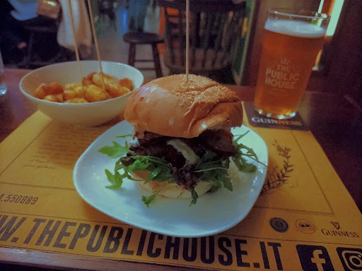 My family and I popped in for a beer, and had so much fun that we had to come back the next day fo dinner. The atmosphere was beautiful, and the staff was incredibly friendly. We crave connection while traveling abroad, and we found it there at the Pub! We instantly felt like family, and it was very refreshing after our long, exhausting trip to Italy. The dinner was absolutely amazing! We had burgers and the whiskey potatoes and our taste buds were very pleased! The burgers were well balanced and beautifully cooked and the potatoes practically melted in our mouths! And they had a cask beer which is always something I look for! We highly recommend The Public House, and like I told Maria, we will be back in 2 (to 4) years when we are better at speaking Italian to chat their...