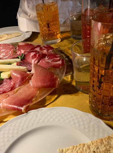 Invitati qui da una cliente di Todi, abbiamo fatto una pausa pranzo che più che pausa pranzo è stata pranzo. Dunque ci è andata bene. Paragonato alla solita insalatina o panino, qui ci è andata di lusso. La nostra cara cliente ha ordinato prima un mix di antipasti con salumi e fritti (questi ultimi fragranti e non pesanti), tutto ottimo. Dopo di che io ho scelto delle tagliatelle al tartufo: buone, ma non al livello degli antipasti, che con la loro prestazione da 9 e mezzo avevano già ammaliato oltremodo. Il pranzo è stato innaffiato da un'ottima Lacrima di Morro d'Alba della cantina Giusti, scelta dal mio collega per sedurre le papille gustative delle nostre clienti umbre con un profumato rosso marchigiano. Rapporto qualità prezzo non lo so, visto che non ho pagato, ma immagino discreto. Parcheggio facile nelle vicinanze, servizio veloce e cortese. Insomma, in this place you can magnà and...