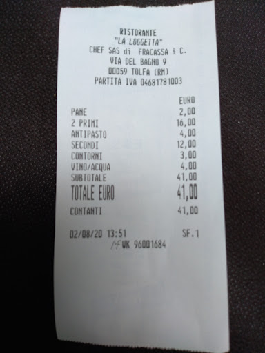 Continuando con i nostri viaggi per controllare la validità dei ristoranti e delle recensioni ricevute oggi siamo venuti a LA LOGGETTA, a Tolfa. Cominciamo col dire che, seguendo il navigatore Android, si finisce in un vicolo scosceso che non invita certo, mentre scendendo per viale Italia si raggiunge più agevolmente. Il ristorante ha un piccolo spazio esterno con tavoli e tre piccole sale interne, con un minuscolo bagno. Nella terza sala, dove stavamo, il condizionatore a tutta forza era piuttosto fastidioso. Ad inizio pranzo abbiamo chiesto che fossero cambiati i tovaglioli, macchiati, ed è stato fatto subito. Abbiamo preso due fettuccine ai funghi porcini, abbondanti, saporite e i porcini freschi e cotti giusti, un piatto di Bruschetta al pomodoro molto ben condite, una patata alla cenere calda con sale e burro, una grande porzione di lumache in sugo di pomodoro, mentuccia e peperoncino, non eccessivamente piccante, pane locale e due bottiglie di minerale. Il tutto per un prezzo totale di 41 euro, come avevo calcolato guardando i nomi delle pietanze e i prezzi esposti nella vetrina di fianco all'ingresso. Ai tavoli infatti vengono a prendere le comande consigliando i piatti del giorno ma non ho visto menù, che comunque è esposto fuori. Il personale è stato presente ma non invasivo, e cordiale. Il cartello dell'orario indica 11-15 a pranzo ma siccome preparano cibo a portare via iniziano verso le 12,30 il servizio ai tavoli. Da notare l'affollamento dovuto agli avventori che frequentano il locale da anni e con soddisfazione il che è quasi sempre una garanzia. Personalmente lo consiglio, il cibo era buono, i tempi di attesa brevi e il prezzo...