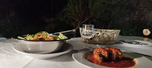 Read moreIl locale è davvero carino, ha questi tavoli all'aperto posizionati lungo una scalinata in discesa, ben curata, che rende tutto molto suggestivo. I camerieri sono davvero professionali, gentili e disponibili anche se costretti a risalire la scalinata continuamente per andare in cucina e tornare ai tavoli ( tutta la mia ammirazione!). Purtroppo il cibo non è stato all' altezza del primo impatto, la pizza davvero nella media, mangiata per fame e lo stinco con le patate sapeva molto di brodo industriale... Tipo quelli precotti in busta. Una porzione di tiramisù era grande quanto un dito indice, per larghezza e lunghezza (l'ho misurato!!! Perché una porzione così piccola nemmeno Cannavacciuolo la servirebbe) ed era tutto savoiardo, si sono dimenticati la crema ( mannaggia!!) Per chiudere una serata così così il conto... 62€ (stinco, pizza 3 wurstel e un dito di tiramisù) troppo per tutto. Purtroppo non ho pensato di fare la foto del tiramisù perché almeno potevamo metterla sul comico!! 😅 Della serie... Non ci resta...