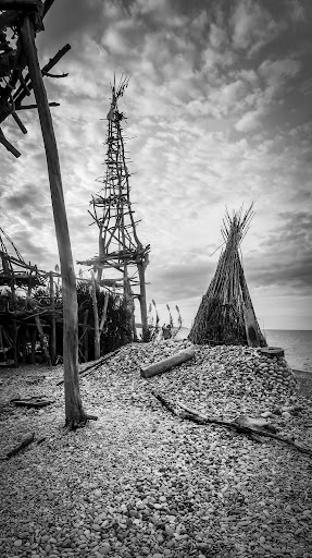 Un piacere in più durante la nostra visita è stato affiancato dall'artista Tiziano Caderna, che è stato il costruttore dell'installazione di legni, fili, funi e pietre sulla spiaggia in questa località ! Sfortunatamente, Tiziano è morto poco dopo la nostra visita, ma ci sono sforzi per preservare la sua installazione e spero sicuramente che accada.