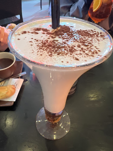 Bar molto attrezzato con un alto numero di tavoli e posti a sedere sia all'aperto che al chiuso, il bar offre una vasta scelta di prodotti, come il caffè Espresso o preparato in tantissimi modi al cioccolato, nocciola, pistacchio etc, ci sono degli ottimi gelati anche se io da loro non lo prendo mai fatti nel loro laboratorio che si trova alle spalle del bar ottima pasticceria ottima rosticceria, ottimi aperitivi c'è inoltre tutto l'anno un banco immenso di frutta fresca anche tropicale 365 giorni l'anno, il bar è fornito anche di angolo dove ha esposto per la vendita ovviamente bottiglie di grappa delle migliori marche e di tantissime qualità e tipi di lavorazione e poi c'è lo champagne e lo spumante Italiano ma c'è ancora altro adesso non ricordo tutto ma c'è tanta ma tanta vasta scelta. La cosa piÚ importante da dire e non posso chiudere il mio pensiero senza dirlo, Propietari eccezionali brave persone onesti lavoratori professionali sono i primi...