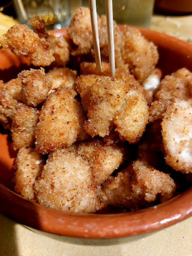 Abbiamo ordinato 2 antipasti: fagioli alla messicana e tocchetti di pollo impanati. I fagioli alla messicana SUPER CONSIGLIATI, buonissimi, impossibile non fare la scarpetta, sono assolutamente da provare nonchè la cosa migliore che abbiamo mangiato; pollo molto buono, croccante all'esterno e morbido all'interno, per niente asciutto.