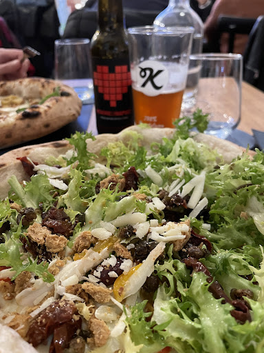 Abbiamo proseguito con una pizza porchetta e patate (non a menu interno, ma si può richiedere senza problemi) e Terra mia, una delle gourmet. Assicuro sul gourmet: è pensata bene come sapori, c’è il croccante e un po’ amaro delle scarole a crudo, il dolce delle papacelle e delle olive, il sapido dei capperi e dei pomodori secchi. E infine il tarallo che da una spinta in più quando lo mangi. Pizza super consigliata anche per i vegeteriani!!! L’impasto è soffice, leggero e digeribile. Insomma bisogna assolutamente andare!! Non vedo l’ora di tornare per provare un’altra pizza che avevo adocchiato. Birre artigianali e varie.