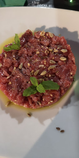 Read moreLocale molto carino, abbiamo cenato in terrazza e fin qui, tutti bene. Ordiniamo da bere e non c'erano molte birre richieste, gli chiediamo il bagno ma era inagibile perché guasto(allagato). Ordiniamo gli starter e le salse erano scadute di pochi giorni ma comunque scadute (anche le formichine volevano assaggiare le patatine, erano sempre sui piatti). Molte verdure finite per cui i nostri amici con intolleranze non hanno preso altro oltre gli starter. Ho preso una tartare, era la mia prima però ho sentito solo l'olio (buono), il sale e la mentuccia, del limone e dello zenzero, nessuna traccia. La scottona degli altri era tanto delicata da non essere percepita 😅. Conto 20 à testa, eravamo 9, buono ma siamo usciti un po' NI ecco. Torneremo a dare...