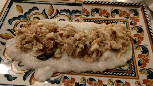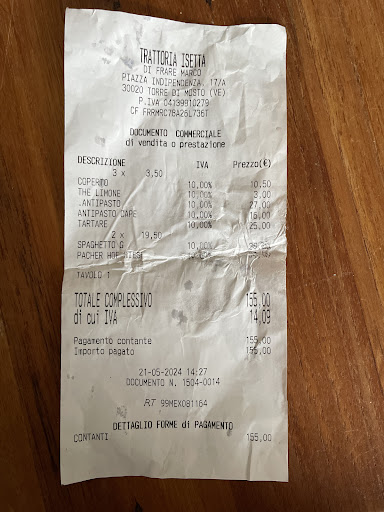 Read morePranzo da DIMENTICARE!!! Abbiamo ordinato un antipasto misto caldo per due caricandoci ad insaputa una porzione di capesante extra. Era moltissimo tempo che non mi capitavano delle cose così imbarazzanti, gamberi in saor vecchi, duri come plastica, poi c’erano dei calamari riciclati da un fritto camuffati con il saor; fetta di polenta con il baccalà sopra, freddo e credo riscaldato con un cucchiaio di acqua perché da altro non sapeva. Tentacoli di piovra da tralasciare, gommosi, stagionati e senza gusto. Poi abbiamo chiesto una tartare di manzo al naturale con soltanto un tuorlo d’uovo al fianco per la bambina, è arrivata con 3 finger-food osceni di plastica neri da catering con tuorlo d’uovo, senape e un mix di Tabasco e worchestershire. Spaghetti con gli zotoi, immangiabili! Senza sugo, l’unico gusto era quello di acciughe che sinceramente sugli zotoi non so cosa ci facciano!!! Reginette capesante, erbe spontanee ed asparagi, sono arrivate con gamberi ed asparagi senza nemmeno avvisare dopo averle assaggiate la mia compagna le ha lasciate perché la pasta era stracotta e il sugo non rispecchiava quello ordinato; sotto il punto di vista che il gambero è un allergene bisognerebbe prima avvisare ciò che si serve. Servizio pessimo, la signora che ha preso l’ordine non sapeva la composizione di nessun piatto, l’altra ragazza ci ha portato l’antipasto da condividere “lanciando” i piatti di servizio ad ognuno…abbiamo ordinato due volte e a due persone diverse l’acqua senza mai arrivare, al momento del conto dopo aver fatto presente il tutto la signorina era pure scocciata per un totale di 155€ Non si sa mai chi si ha di fronte e una volta su dieci qualcuno metta a nudo tutto ciò che la gente non del mestiere non...