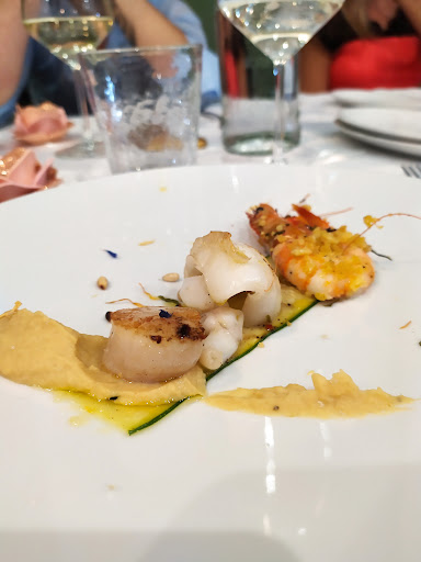 Ho cenato in questo ristorante durante le feste. Locale moderno, ben rifinito, accogliente. Giusto numero di tavoli e correttamente distanziati. Menu variegato, principiante a base di pesce ma ci sono anche portate di carne. Ottima la possibilità di ordinare antipasti di mare cotti per chi non mangia il pesce crudo. Tartare varie buonissime, pesce freschissimo, ottimi gli abbinamenti. Ottimo rapporto qualità prezzo. Abbiamo preso 8 antipasti caldi, misto di crudi vari, 8 primi, 2 bottiglie di vino, misto frittura per tutti, quasi tutti dolce, amari e caffè. Prezzo 40 euro a testa. A Milano la stessa cena nel ristorante di quartiere costa il doppio. Lo consiglio a chiunque voglia mangiare qualcosa di diverso dalla classica lasagna della Domenica. Il tiramisù ricorda molto la ricetta classica Veneta, molto...