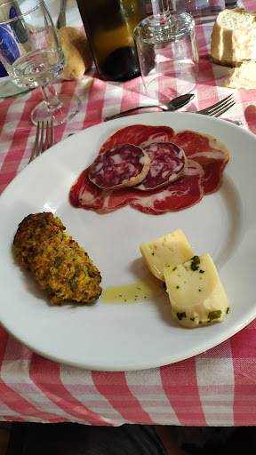 Un sogno ritrovare ancora nella Langa più nascosta e meno turistica una delle osterie più autentica e con i piatti che ti regalano gioia e emozioni. Conoscevo da tempo l esistenza di questa storica osteria ma per motivi più svariati, principalmente per la mancanza della compagnia giusta per condividere l' esperienza non ci ero ancora arrivato. L occasione, come sempre arriva inaspettata, stavamo cercando un tavolo con un amico, pensando magari al Roero o al Monferrato, quando una telefonata di simpatici compagni ci dice della rimpatriata da Cesare a Torresina. Con allegria e prudenza percorriamo i tanti tornanti che da Dogliani ci portano nella Langa segreta di Torresina. Il piccolo borgo è rimasto intatto, come è rimasta miracolosamente intatta la ultracentenaria Trattoria. Per chi ha avuto la fortuna di aver vissuto da giovanissimo studente negli anni 60 l 'alta Langa e di essere passato attraverso tutti i cambiamenti continui e sempre più veloci,vissuti con fiducia grazie alle solide radici educative e alla serenità di conoscere a grandi linee il percorso, ho provato una gioia immensa constatare che una parte importante delle cose che ci hanno insegnato ad amare, abbiamo amato e continuiamo ad amare erano rimaste e potranno ancora rimanere. Le tradizioni, il passaggio dei saperi, la pazienza e la tenacia, la bella collaborazione famigliare tra generazioni diverse, i valori del rispetto, dell ottimismo erano evidenti. La pasta fatta in casa in bella mostra, le tume per il finale del pasto, le tante fotografia esposte dei grandi campioni del pallone elastico,la grande passione di Cesare,credo condivisa, almeno in parte dalle nuove generazioni erano i segni e i simboli di questa fantastica realtà. Poi naturalmente all'osteria si va per mangiare, o meglio per vivere con intensità la bella emozione di ritrovare intatti i gusti veri, genuini.Il tavolo è preparato con schietta semplicità, ma la nitidezza e il profumo di pulito e di cibo sono le cose che più si apprezzano, naturalmente alla accoglienza vera e sentita di tutta la bella famiglia Mollo Si parte con i salumi della tradizione, poi la carne all albese sublime, i peperoni con la salsa giusta, l insalata russa,l introvabile tartra e le frittelle, poi i ravioli, che unitamente ai plin di Gemma di Roddino e a quelli di Vilma di Castellino rappresentano il massimo della gioia, ancora le tagliatelle con i funghi e poi un coniglio alla cacciatora straordinario , oltre ad un arrosto pieno di poesia. Non potevamo tralasciare un assaggio delle ormai introvabili tume, con i profumi dei pascoli fioriti e un tris di dolci per portarci nella memoria ricordi indelebili, il tutto con la bella abitudine dell' eventuale ripasso Bevendo il semplice e grande dolcetto della casa e condividendo un magnum di Mont Russ di Magliano unico e pieno di storia. Conto super onesto Rileggendo il tutto mi rendo conto che non ho rispettato i normali canoni di una recensione, ma di aver scritto una poesia che mi è stata dettata dal cuore e mi diventa impossibile tagliare anche una singola parola. Direi che è super consigliato mi sembra superfluo, per noi lo charme, il calore del locale d' antandi vissutoè un pregio, che difficilmente i nuovi arredatori riusciranno mai a riproporre.Un particolare, lo storico juebox ci ha riportato di colpo alla nostra genuina voglia di musica e allegria.Un grazie dal cuore a Cesare e a tutta la sua bellissima famiglia. Non vedo l ora di portare i miei famigliare e gli amici in questo...