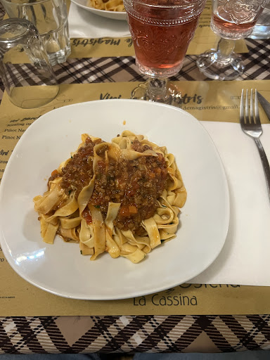 Antipasti della casa ottimi, formato da un tagliere di salumi vari e abbondante, sottaceti casalinghi ottimi, insalata russa, polpette fritte e polpette al sugo e fiori di zucca fritti. Il vino della casa, una Bonarda mossa ma non frizzante ha accompagnato il tutto. A seguire Due primi: gnocchi alla salsiccia e funghi porcini molto buoni e tagliatelle al ragù di frisona con scaglie di tartufo nero anch’esso ottimo e abbondante. Tagliatelle fatte in casa. Dolci e caffè hanno completato l’abbondante pranzo. Il prezzo in linea con la qualità dei prodotti offerti. Se desiderate un ambiente informale, a gestione famigliare e con un tocco decisamente al maschile nella gestione dei clienti, l’antica Osteria La Cassina potrà soddisfare le vostre...