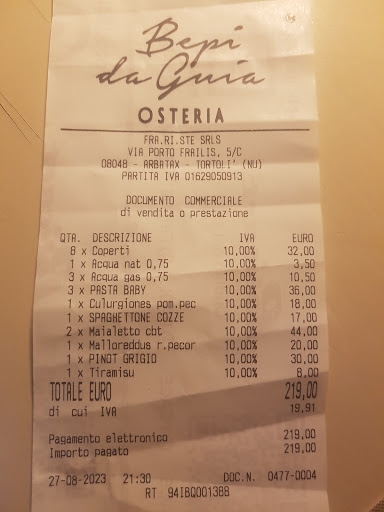 We had confirmed reservations with the restaurant in writing for 7pm, which is when they open. We showed up 5 mins early- we were the only people there and were immediately told that if we didn’t have a reservation they were fully booked and wouldn’t accommodate us. When I showed them the written reservation confirmation- there seemed to be a huge fight between the staff about it. Loud and extremely unprofessional behaviour in-front of guests. We were seated by Penelope who then went off to set up the remaining tables and left us with no menu. We were the ONLY guests there. There was literally NO ONE else. We were ignored for a good 10 mins before we were finally given our menus. We ordered two courses (first and second) from a menu with no prices on them. The food arrived almost instantaneously and all at once, both courses. I have never eaten at a restaurant where both courses were served at the same time. While we ate our first course, flies gathered around our second course. Wasps joined the flies which added to our unpleasant dining experience. Still, there were no other guests at the restaurant. At around 7:45 the first couple of guests trickled in. We noticed these guests were given bread while they waited for their food- this was not offered to us. The other guests were also served their first course without their second course all brought out together. It was obvious that they wanted us to leave as soon as possible. I asked Ricardo to please address the wasp issue and he offered me bug spray- to spray the wasps myself. As a guest I would expect the staff to take care of this. We then moved inside to protect ourselves from the wasps and asked for the bill. We were brought the bill (which was not a small amount) and then told that they could not accept card as their card machine had not been working since yesterday. AFTER THE MEAL. If they had known about the card machine not working since yesterday, why didn’t they tell us before we started ordering the food?? We were €5 short of covering the bill with the cash we had - which Ricardo said was not an issue and we left. I did not feel welcomed as a guest at the restaurant and their service was appalling given that there were several tables still empty when we left. In fact the table we were sat on wasn’t expecting anyone till 9:30 pm as per the note attached to the table. If they are incapable of serving dinner within 2.5 hrs- then that’s a sign that they are not capable of running a restaurant. Extremely unwelcoming staff and very...