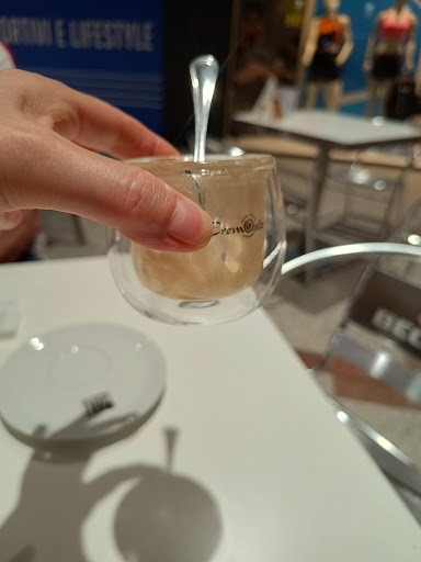 Ieri ci siamo fermati in questo centro commerciale per un caffè e fare la spesa, un caffè 1,20 ci sta' ma una crema fredda al caffè in un bicchierino piccolo all'interno e un po' più grande fuori e una vera fregatura di e no ci sanno stati all'interno del bicchierino 4 minuscoli cucchiaini lo pagato 2,50 una vera truffa capisco tutto ma almeno volete darci da mangiare ho dobbiamo solo sederci darvi i soldi e andare via!!!...
