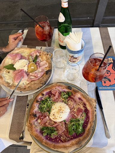 We came here from a recommendation from others visiting the area but didn't know what to expect. The restaurant has nice semi-outdoor seating up the stairs, but the lighting at night is very green (as can be seen in the photos) and the train goes by every so often, which is very noticeable, though not too much of a detraction from the ambiance. The service is really friendly and attentive and tolerated our crude Italian. I ordered the gnocchi as soon as I saw it on the menu and my date got the vongole with bruschetta as a starter. The bruschetta was fantastic and we both really enjoyed it. The gnocchi was really good too, though just draping the speck on top was kind of odd and made it a little difficult to eat. My date also enjoyed the vongole, though didn't go so far as to say it was great, as she's done with almost everything else on the trip, so there's that. All in all, we had a very pleasant meal, but will likely try some other spots in the area if we do make a return...