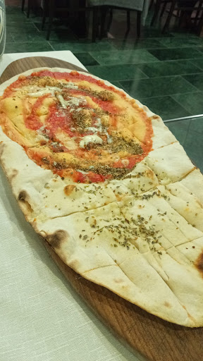 Read moreHo conosciuto il locale un sabato sera, cena con amici, eravamo in 8. Location alla mano ma accogliente, con possibilità di sedersi sia all’interno che all’esterno, i tavoli non sono ammassati e si presta sia alle coppie che a tavolate più numerose. Personale professionale e, per lo più, anche cordiale. Spumantino / crodino di benvenuto ed, al termine della cena, liquore al: limone, liquirizia, e melone offerti. Sicuramente una simpatica abitudine credo apprezzata dalla clientela. Prezzi non elevati. Abbiamo ordinato 7 pizze ed un primo, purtroppo il primo è stato servito con largo anticipo rispetto alle pizze, che a mio personale gusto, avrei gradito almeno un po’ più alte. Ricordano il pane carasau sardo per quanto sono sottili ed il peso del condimento invoglia ad usare le posate (anziché mangiare la fetta con le mani). Originale anche la forma ovale, anche se preclude la possibilità di ruotare sia la pizza, che il piatto stesso. Abbiamo diviso e scambiato con un amico le nostre pizze per assaggiare due alternative e devo dire che entrambe erano ottime. Sul sapore veramente nulla da dire, sullo spessore della pasta …..è solo una...