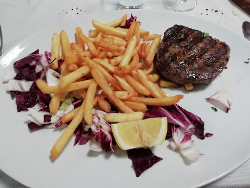 Read moreSanno cucinare bene carne e pesce. Porzioni abbondanti. Per i primi, quantità da camionisti e scelta limitata al tipo di pasta con carne, pesce o verdure (non ci sono risotti per esempio). Secondi e insalatone belli abbondanti. Ti portano sempre pizza e schiacciata (buone!) insieme a prosecco o ginger per aperitivo (molto apprezzato!). Pizze buone e sottili come piacciono a me e...inaspettatamente ovali. Quando c'è tanta gente è capitato quasi sempre qualche errore nell'ordinazione, ma rimediano subito portando cibo in aggiunta (non sostituendo per esempio la verdura sbagliata). Che però mi sembra un po' uno spreco se poi non c'è qualcuno a tavola che si "sacrifica" e fa fuori anche quello che è arrivato in più. Mi sembra che ci rimettano un po' anche loro così, però sicuramente il cliente poi è difficile che...